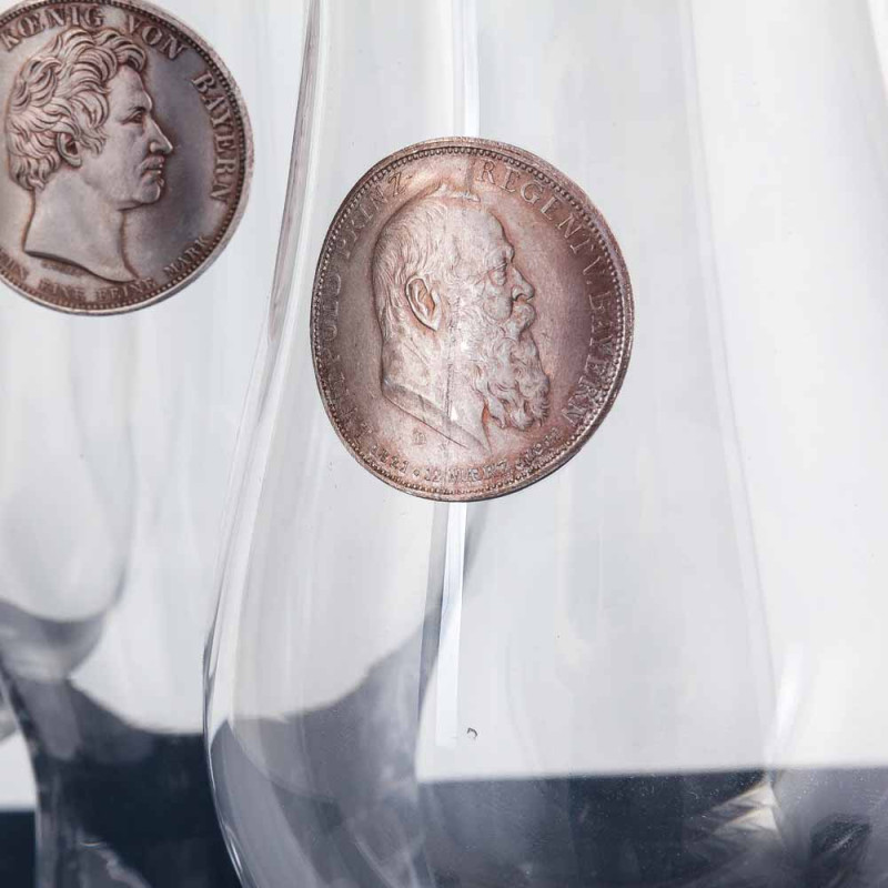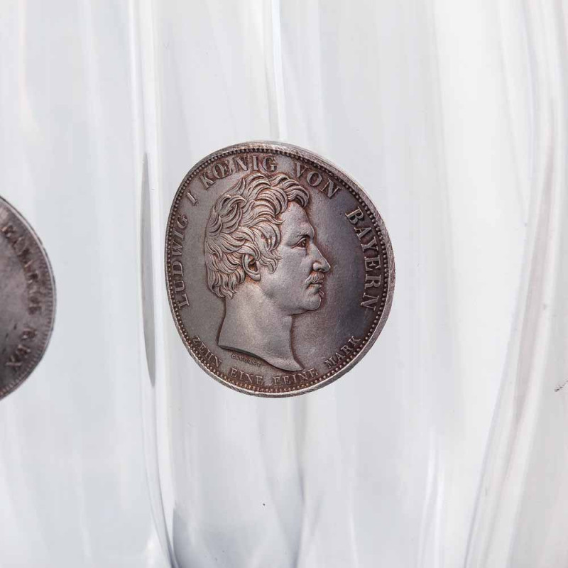 Этот роскошный набор создан для подлинных ценителей пива, истории и королевской эстетики. Три бокала из тонкого богемского стекла образуют единый ансамбль, вдохновленный наследием Баварской монархии. Каждый бокал украшен репликой посеребренной монеты с образом одного из трех знаковых правителей:
