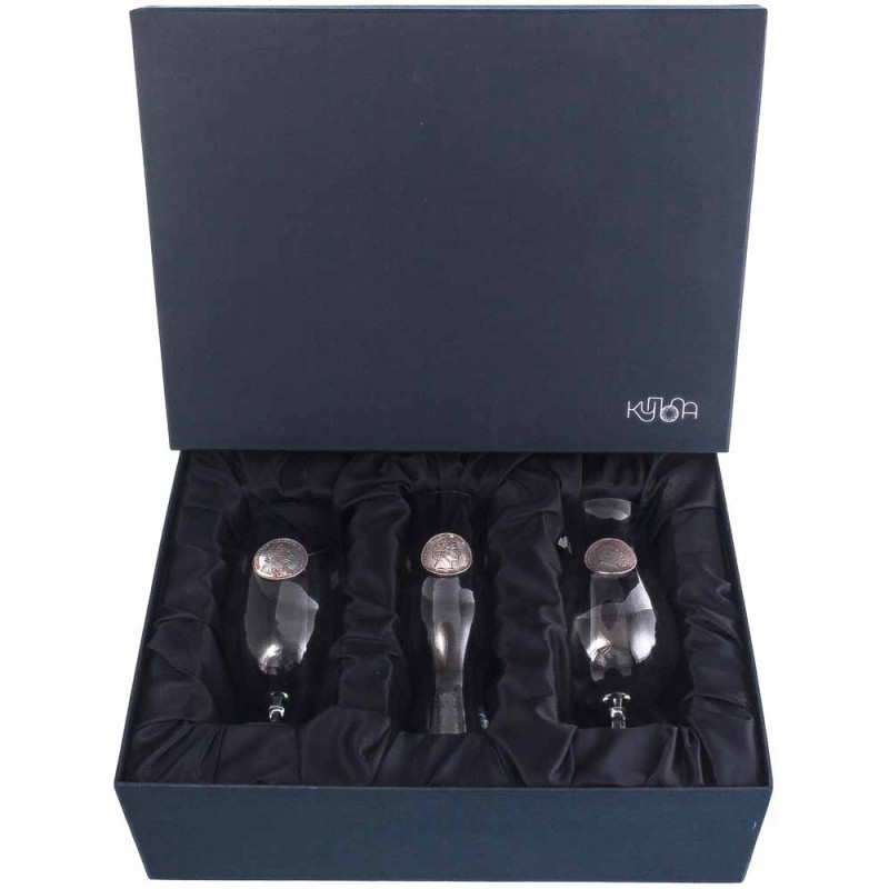 Богемское стекло – эталон изысканности, а в сочетании с историческими элементами этот набор превращается в настоящий коллекционный шедевр. Изящный звон бокалов дополнит каждый тост нотками аристократического звучания.