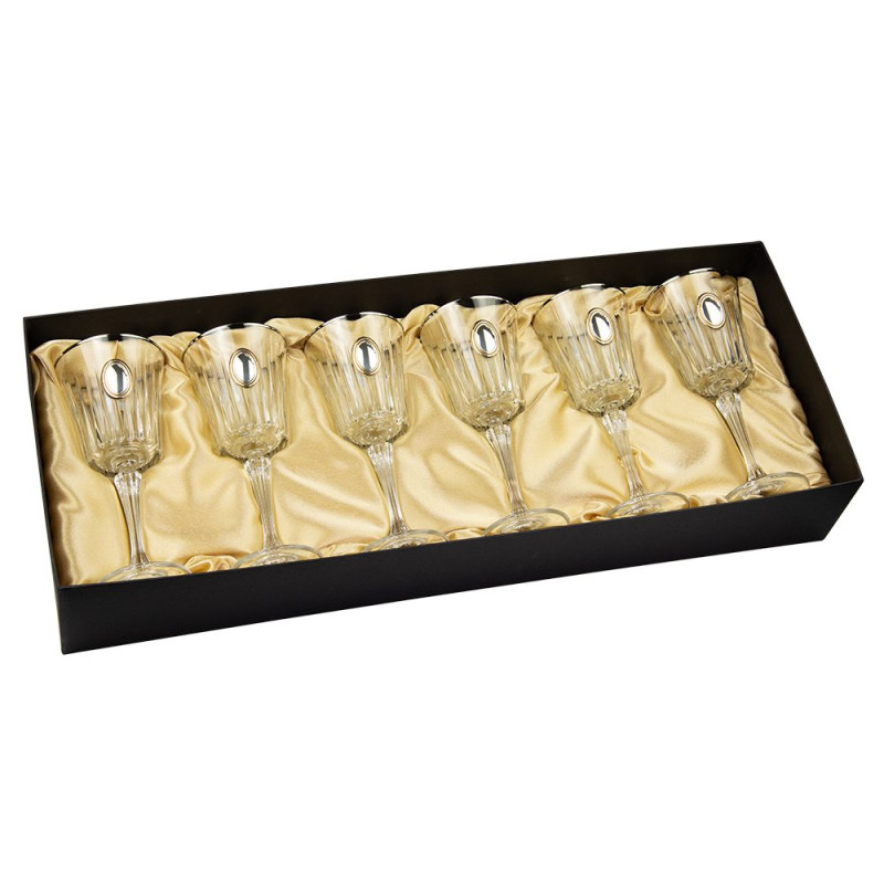 Набор для вина и воды Boss Crystal, 6 бокалов, платина, серебро, золото, хрусталь