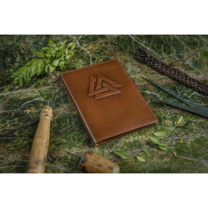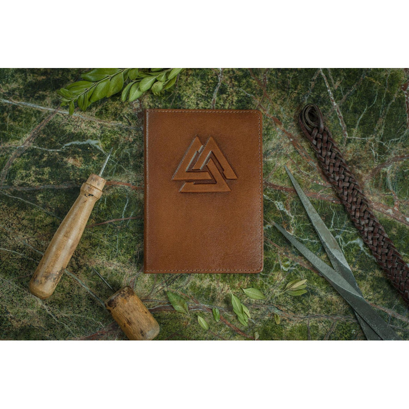 Обложка для документов ручной работы изготовлена из натуральной кожи высочайшего качества. Обложка имеет специальный карман для паспорта, 2 дополнительных кармана для денег / купюр / посадочного талона / билетов и 2 кармана для кредитных карт или визиток. Декор выполнен по технологии конгревного тиснения с нанесением позолоты, тонировки и лакового покрытия.