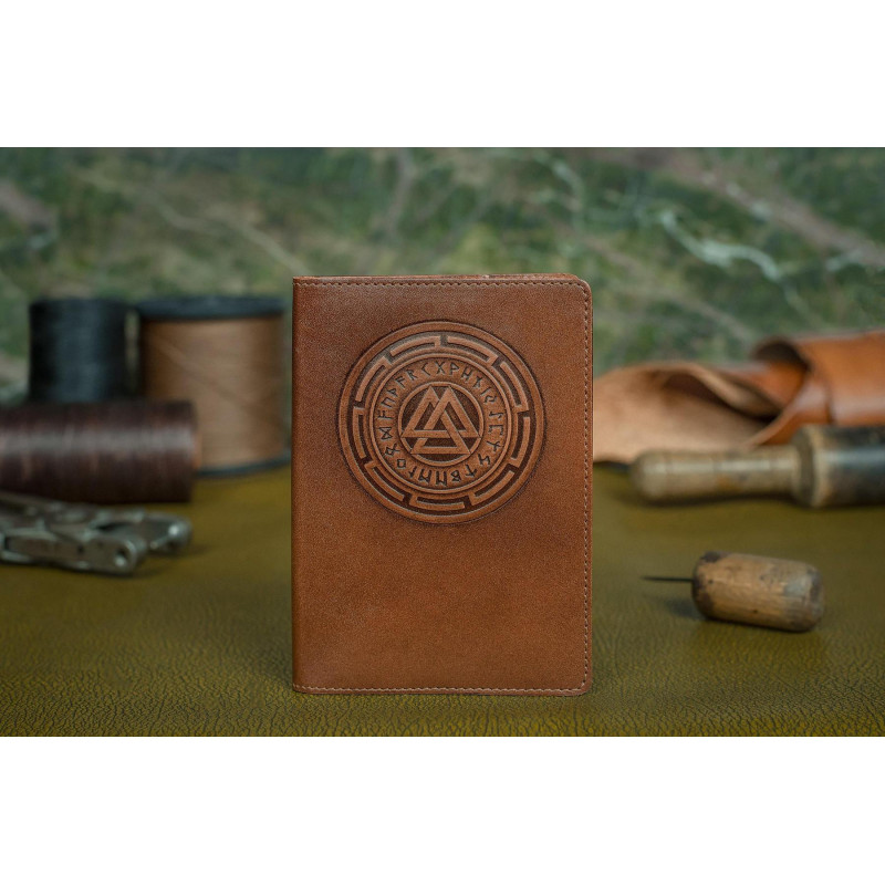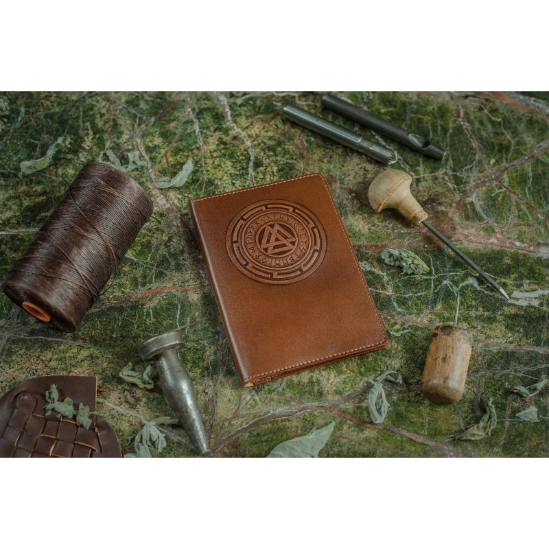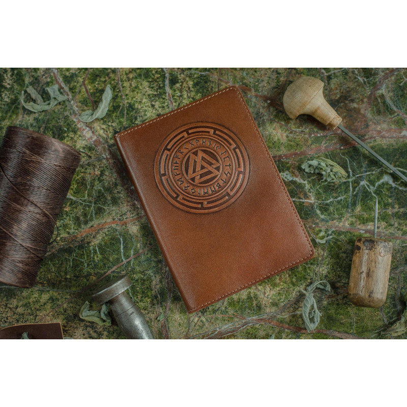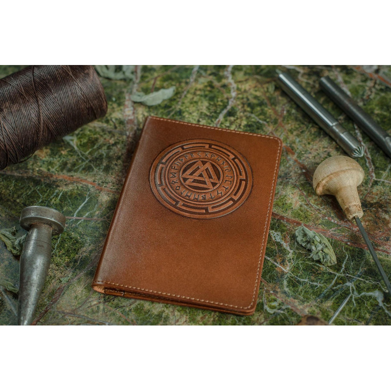 Обложка для документов ручной работы изготовлена из натуральной кожи высочайшего качества. Обложка имеет специальный карман для паспорта, 2 дополнительных кармана для денег / купюр / посадочного талона / билетов и 2 кармана для кредитных карт или визиток. Декор выполнен по технологии конгревного тиснения с нанесением позолоты, тонировки и лакового покрытия.
