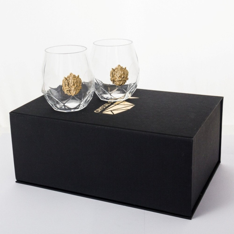 Два бокала из хрусталя высочайшего качества украшены накладками в виде трезубца из меди, покрытой золотом. Это не просто красивый декор, но и символ украинского духа и независимости. Элегантный дизайн бокалов Crystal Origin подчеркнет красоту любого напитка, будь то шампанское, вино или другой коктейль.