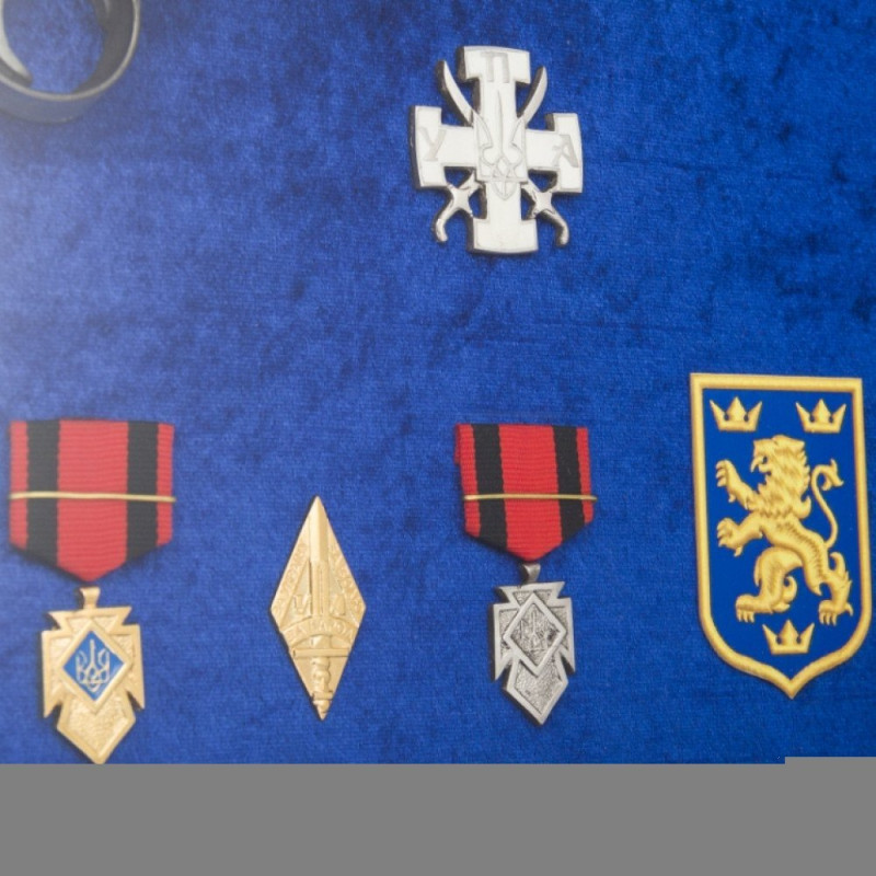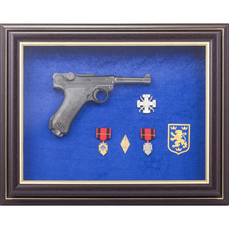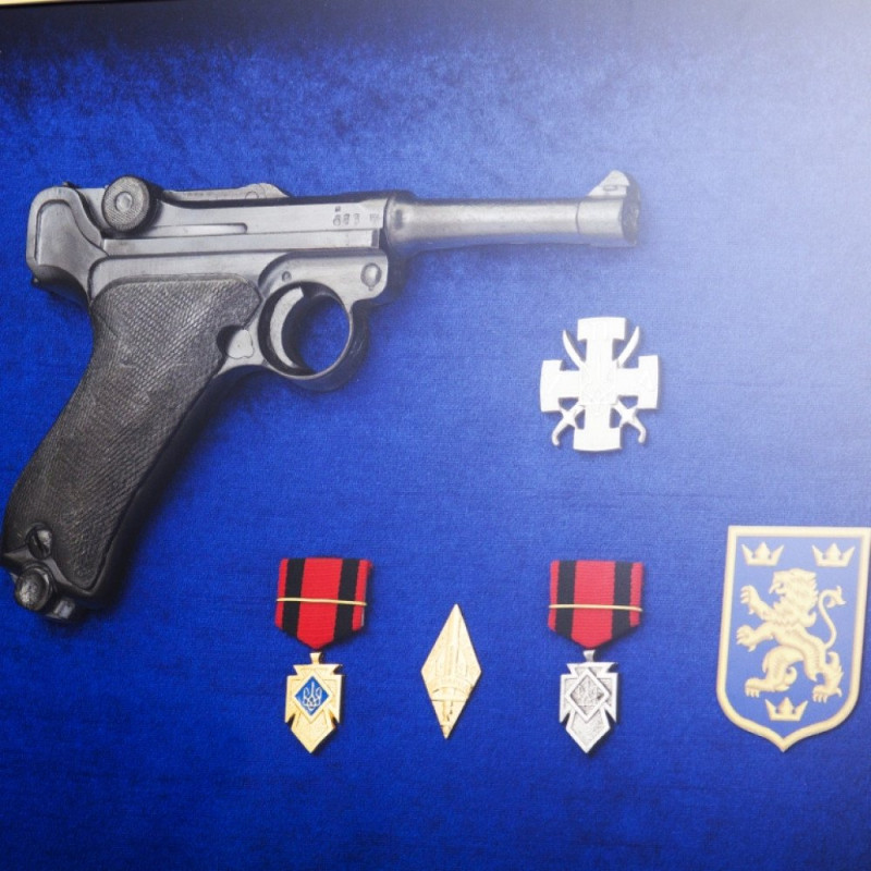 Подарочный колаж на стену пистолет Парабеллум с наградами УПА