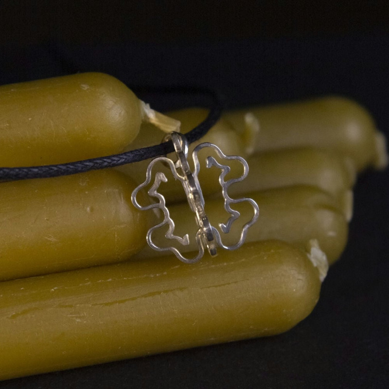 На центральной части кулона расположен интригующий символ "четырехлистника", который известен своей магической силой и способностью притягивать счастье к своему владельцу. Четырехлистник символизирует такие ценности, как удача, успех, любовь и здоровье - все, что необходимо для счастливой и удачливой жизни.