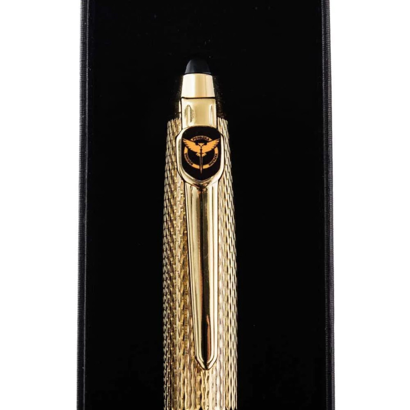 Ручка TENSO воплощает в себе европейское качество и украинский характер, а ее футляр украшен эмблемой ГУР, напечатанной методом сублимации на металле, что обеспечивает глубину цвета и четкость деталей.