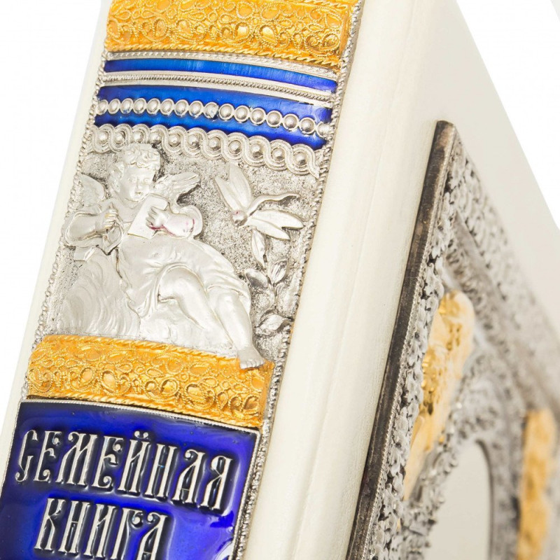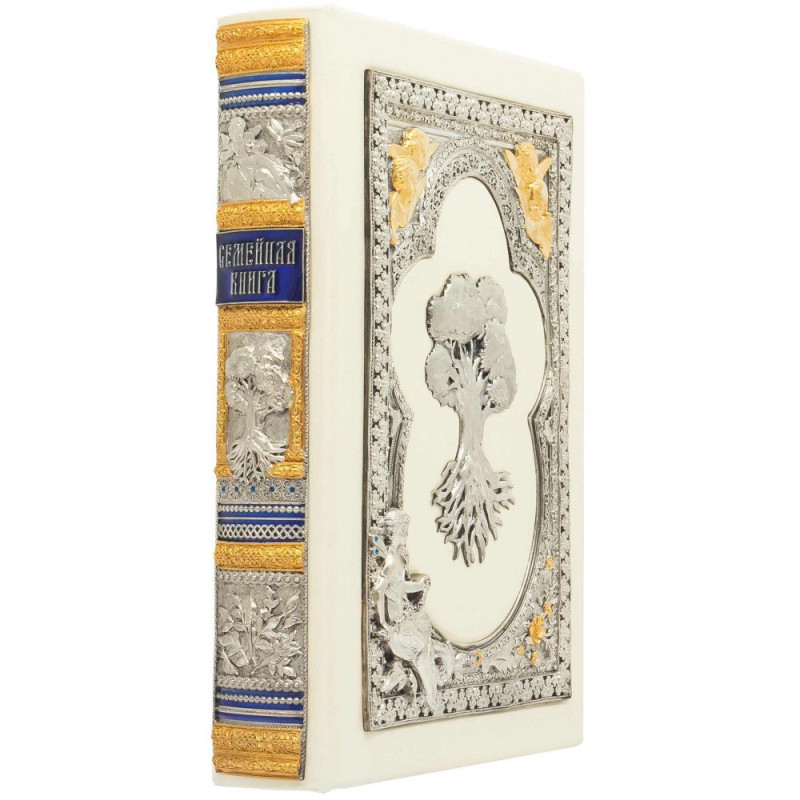 Семейная книга в кожаном переплете с серебром и позолотой