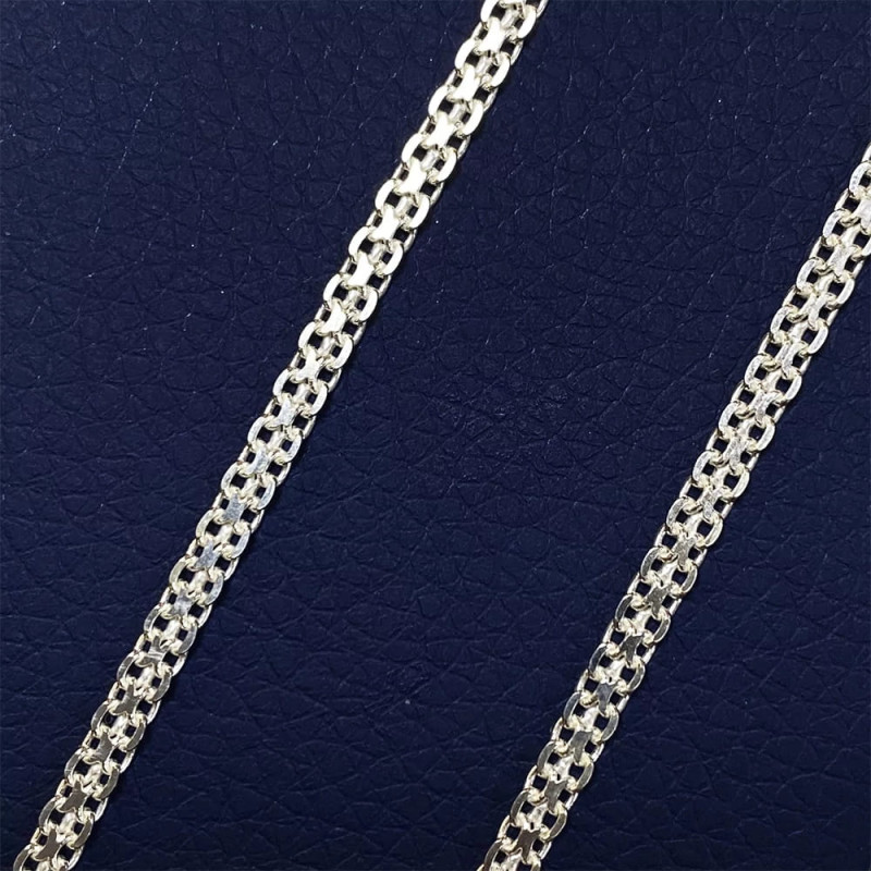 Цепочка машинной вязки характеризуется идеальным соотношением цены и качества, а также неоспоримыми визуальными преимуществами. Современное профессиональное оборудование позволяет выполнять работу оперативно, а также минимизировать возможность возникновения любых мелких дефектов, которые могут повлиять на внешний вид и прочность готового изделия из серебра.