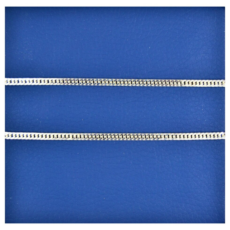 Цепочка машинной вязки характеризуется идеальным соотношением цены и качества, а также неоспоримыми визуальными преимуществами. Современное профессиональное оборудование позволяет выполнять работу оперативно, а также свести к минимуму возможность возникновения любых мелких дефектов, которые могут как-то повлиять на внешний вид и прочность готового изделия из серебра.