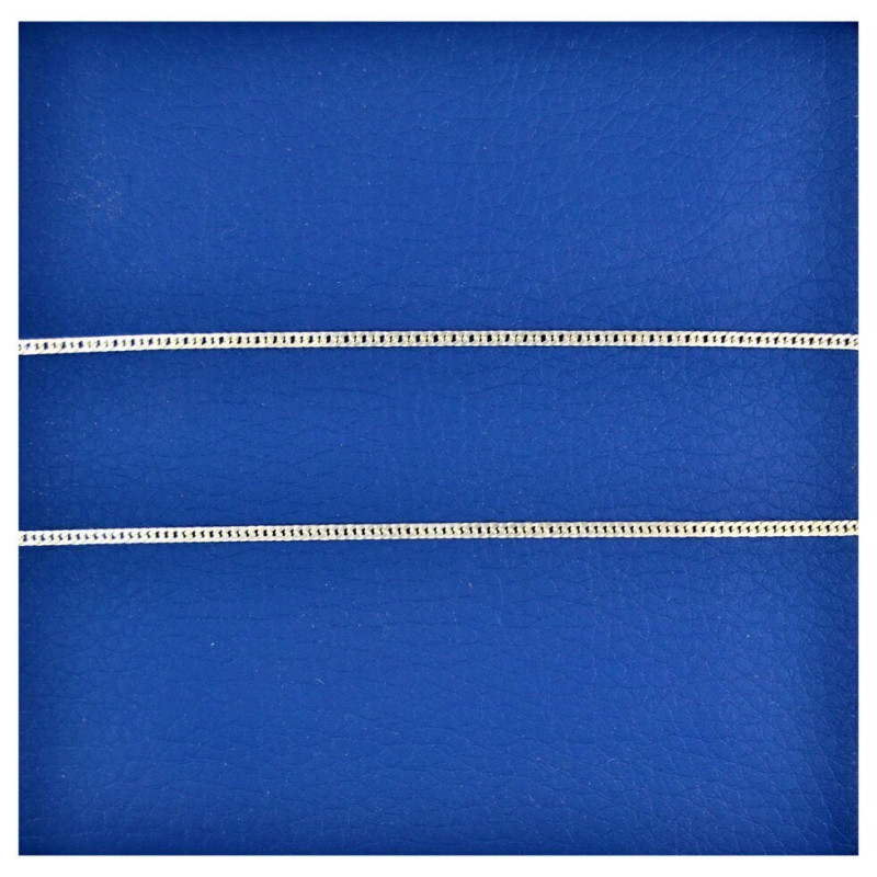 Цепочка машинной вязки характеризуется идеальным соотношением цены и качества, а также неоспоримыми визуальными преимуществами. Современное профессиональное оборудование позволяет выполнять работу оперативно, а также свести к минимуму возможность возникновения любых мелких дефектов, которые могут как-то повлиять на внешний вид и прочность готового изделия из серебра.