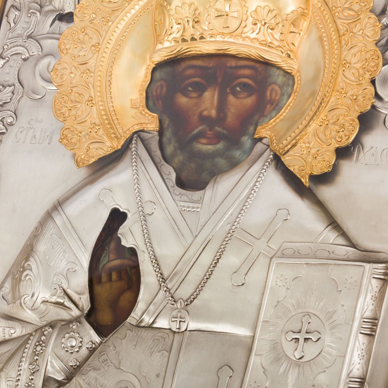 Серебряная икона "Николай Чудотворец"