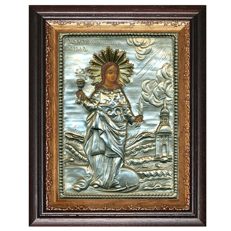 Серебряная икона "Святая мученица Варвара"