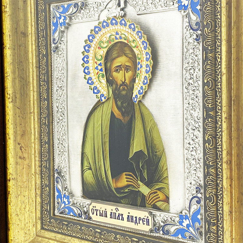 Андрей Первозванный - первый ученик Иисуса Христа. Он проповедовал христианство в разных странах. Андрей Первозванный был распят на косом кресте в греческом городе Патры. Мощи Андрея Первозванного хранятся в Амальфи, Италия. Икона Святого апостола Андрея - это не просто произведение искусства, но и символ веры, надежды и мученичества. Она является источником вдохновения для многих людей по всему миру.
