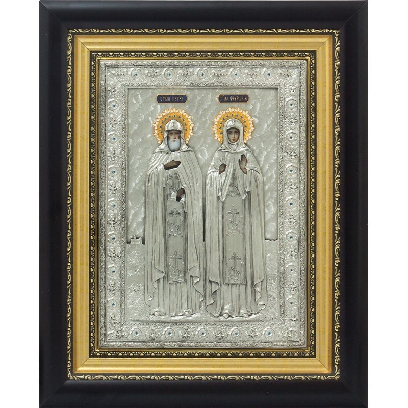 Серебряная икона "Святые Петр и Феврония"