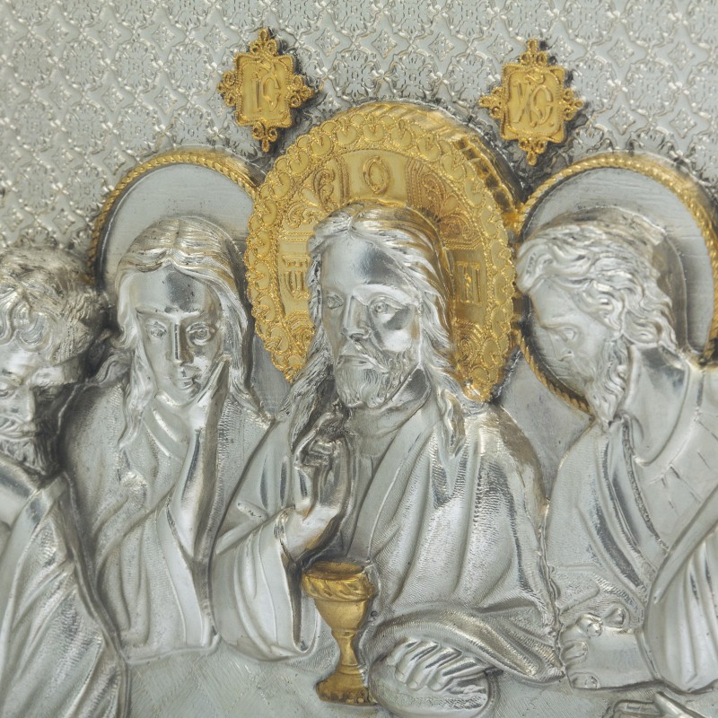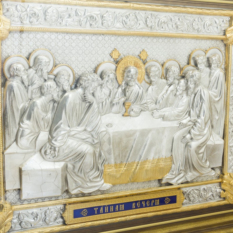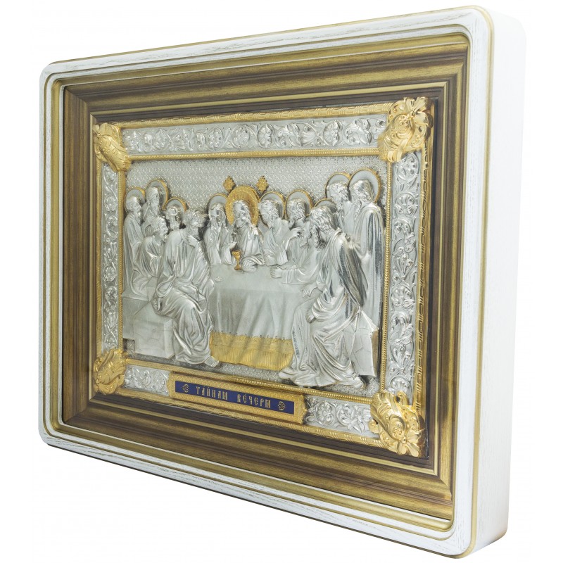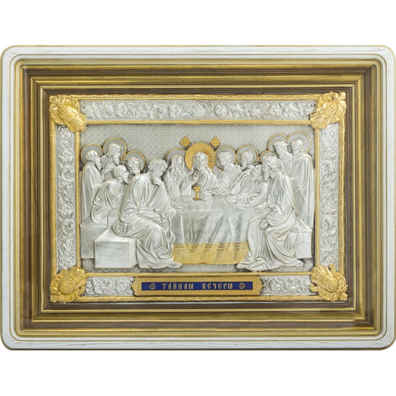 Серебряная икона "Тайная вечеря" в круглом багете