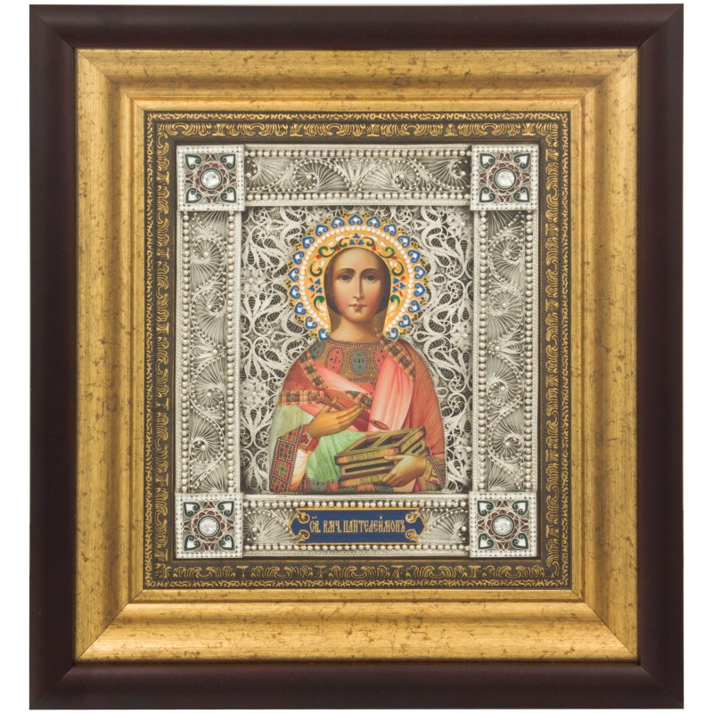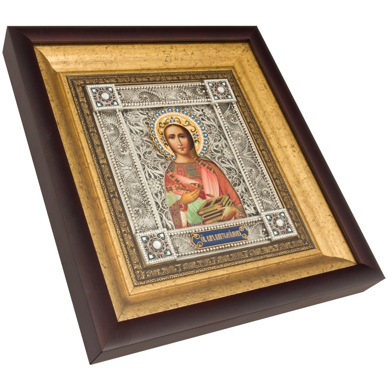 Серебряная икона "Ввеликомученик и целитель Пантелеймон"