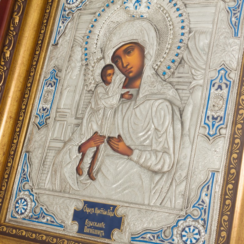 Молодые люди, желающие заключить брак, в первую очередь молитвенно обращаются к Господу и Небесной Царице. По традиции, молитвы Божьей Матери возносятся перед иконой "Взыскание погибших". Чему молятся верующие? Они просят Богородицу мудрости в совместной жизни, терпения, счастья, дарования здоровых детей. Икона Божией Матери "Взыскание погибших" спасает людей, которые оказались перед лицом смертельной опасности. Известная своим чудотворным образом икона "Взыскание погибших" станет хорошим подарком близкому человеку. День памяти иконы 5 февраля в Православной церкви. Известная чудотворным образом икона "Взыскание погибших" из села Малижина, что в Харьковской губернии, явленная в 1770 году, троекратно избавляла жителей от холеры - из Воронежа, Козлова Тамбовской губернии, из села Красное, что в Черниговской губернии. Храм был освящен в честь чудотворной иконы "Взыскание погибших" при Московском Александровском Сиротском институте в 1835 году.