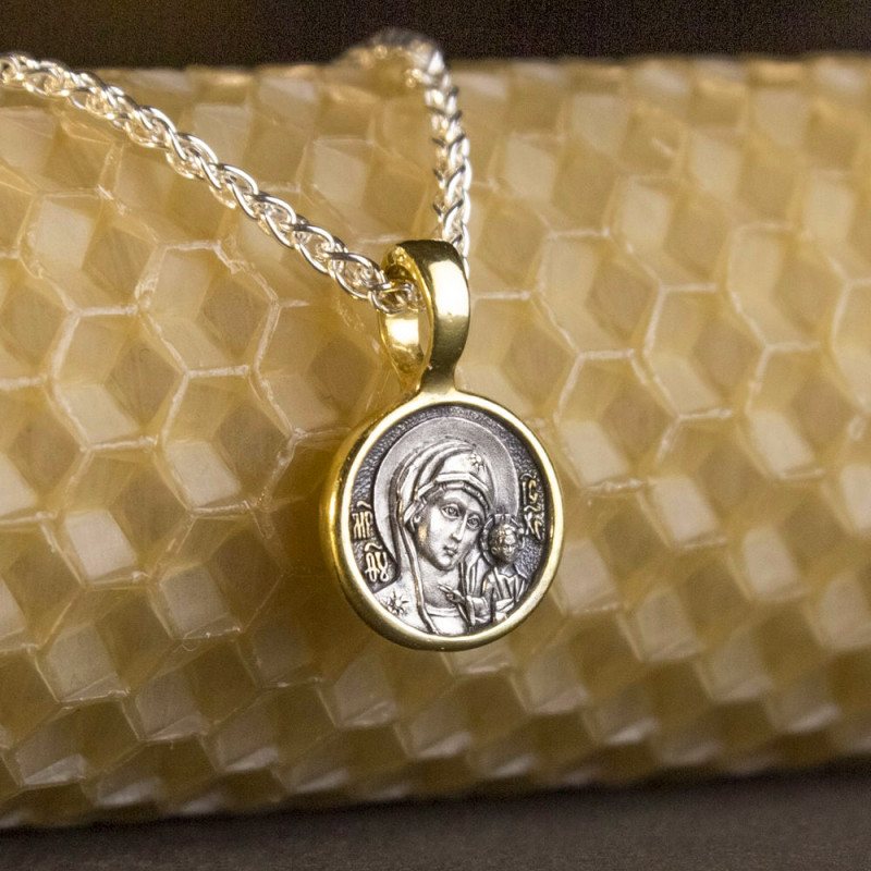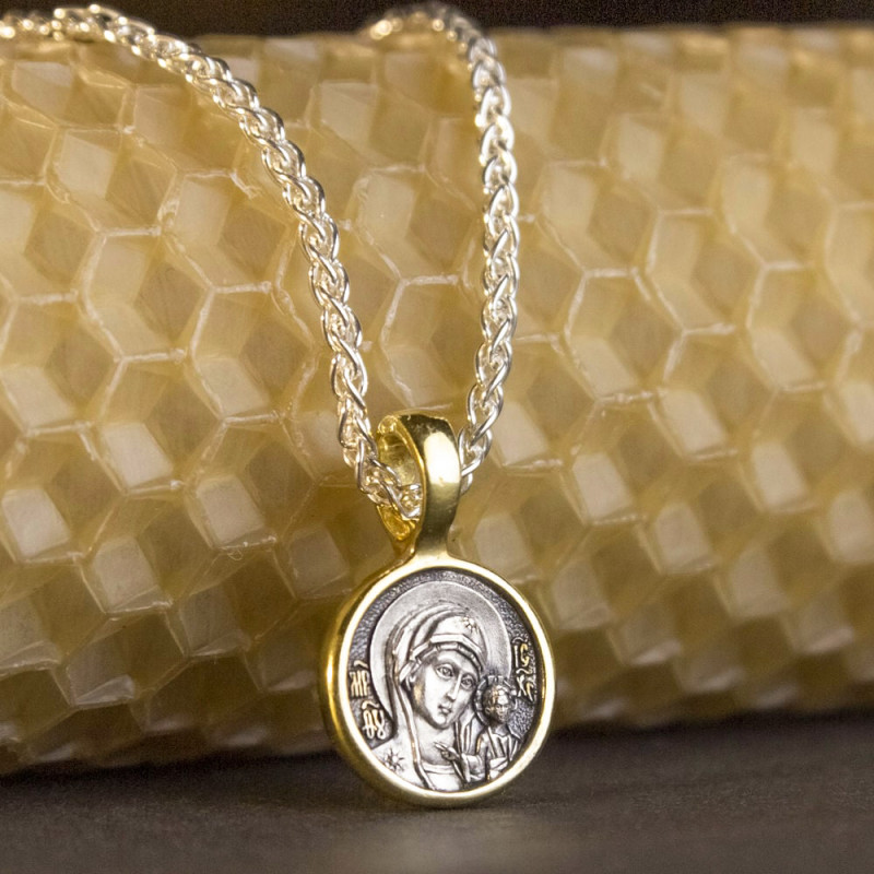 Серебряная ладанка с позолотой Казанская икона Божией Матери ПСП-001