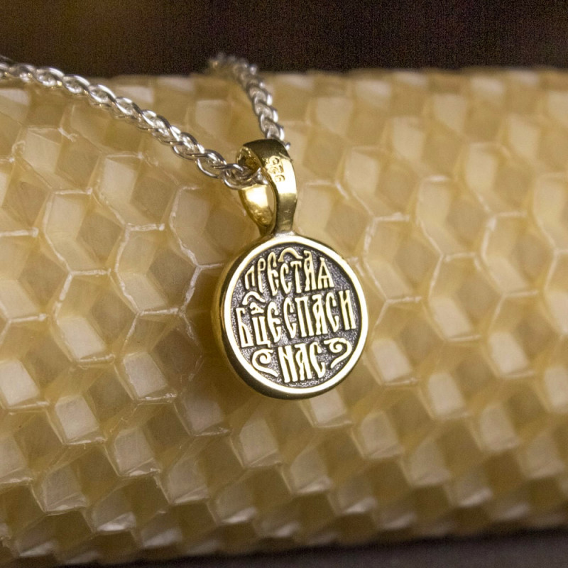 Серебряная подвеска изготовлена из серебра 925 пробы и покрыта позолотой 999 пробы.