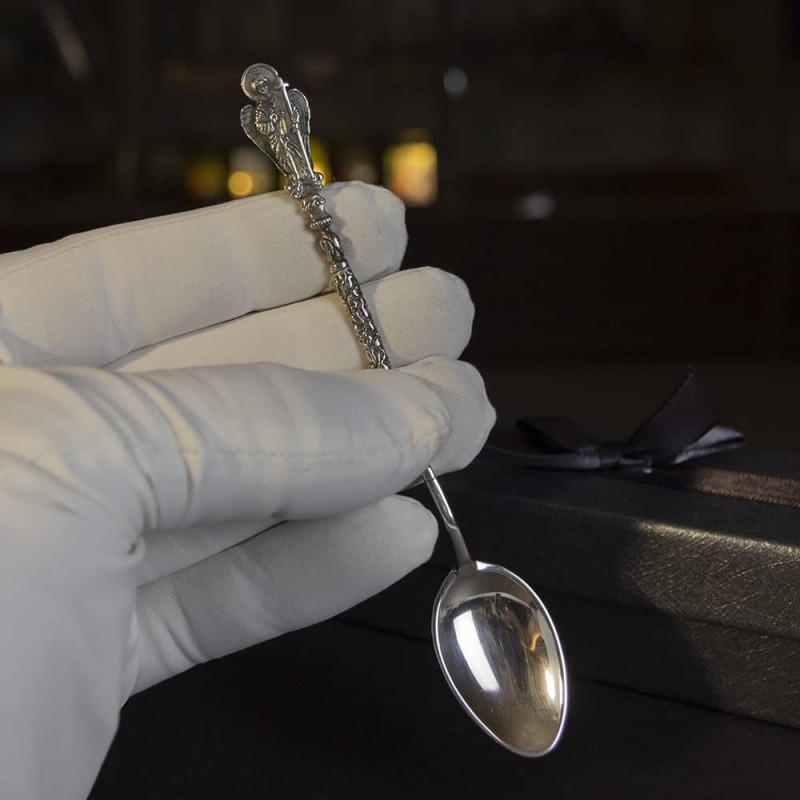 Серебряная кофейная ложка "Ангел Хранитель" 5747 - это изысканная и элегантная ложка, созданная в Украине с применением высококачественного серебра 925 пробы.