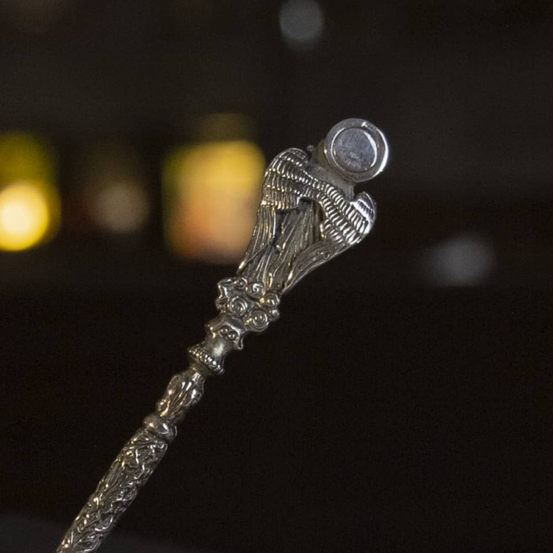 Особенностью этой кофейной ложки является ее уникальный дизайн, благодаря которому она получила название "Ангел Хранитель". Образ ангела, прекрасно изображенного на ручке ложки, придает изделию нежность и романтичность. Использование такой ложки придает особый шарм и эстетическое удовольствие при наслаждении кофейным напитком.