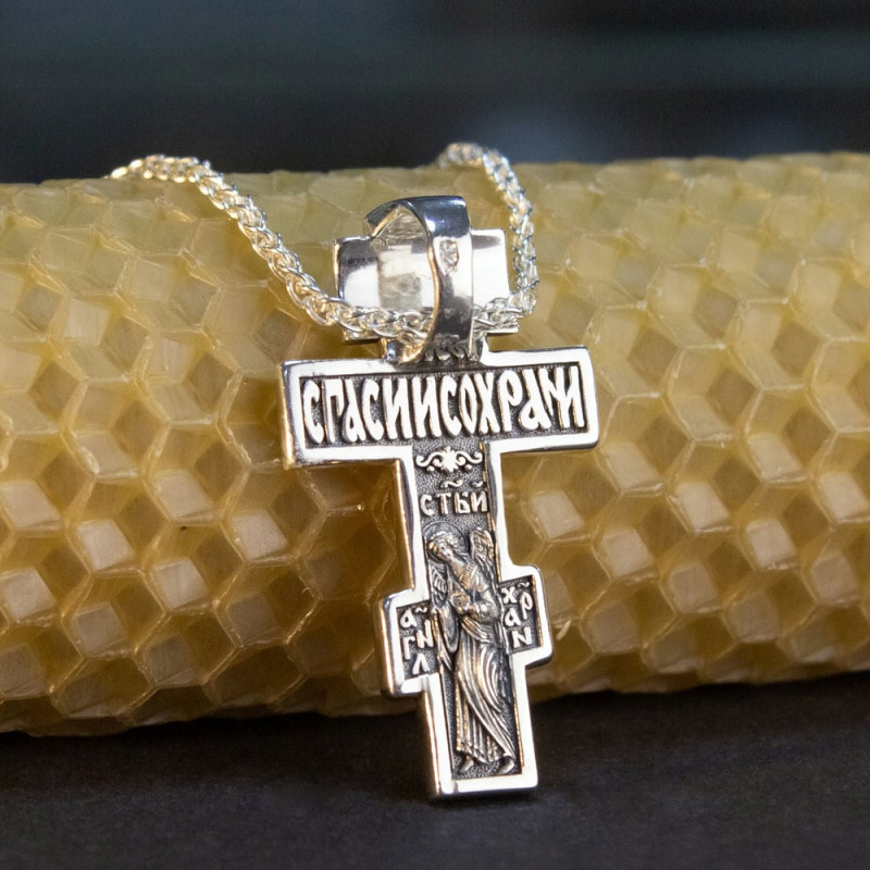 На лицевой стороне изображение Иисуса Христа, а на обратной надпись "'Спаси и Сохрани" и Ангел Хранитель.