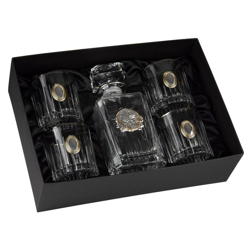 Сет для виски Boss Crystal «ДИРЕКТОРСКИЙ КВИНТА», графин Лев, 4 бокала, платина, серебро, золото