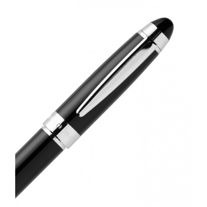 Современный и практичный письменный прибор, шариковая ручка бренда Hugo Boss из коллекции Icon является элитным аксессуаром. Безупречные линии корпуса, лаконичный, выполненный в монохромных тонах дизайн, удобный, оригинальной формы клип, эргономичность прибора – неотъемлемые достоинства данной модели ручки. Благодаря своей изысканной простоте ручка гармонично совмещает в себе утонченную роскошь и лаконичный дизайн. Нижняя часть колпачка декорировано сдержанным логотипом бренда HUGO BOSS.