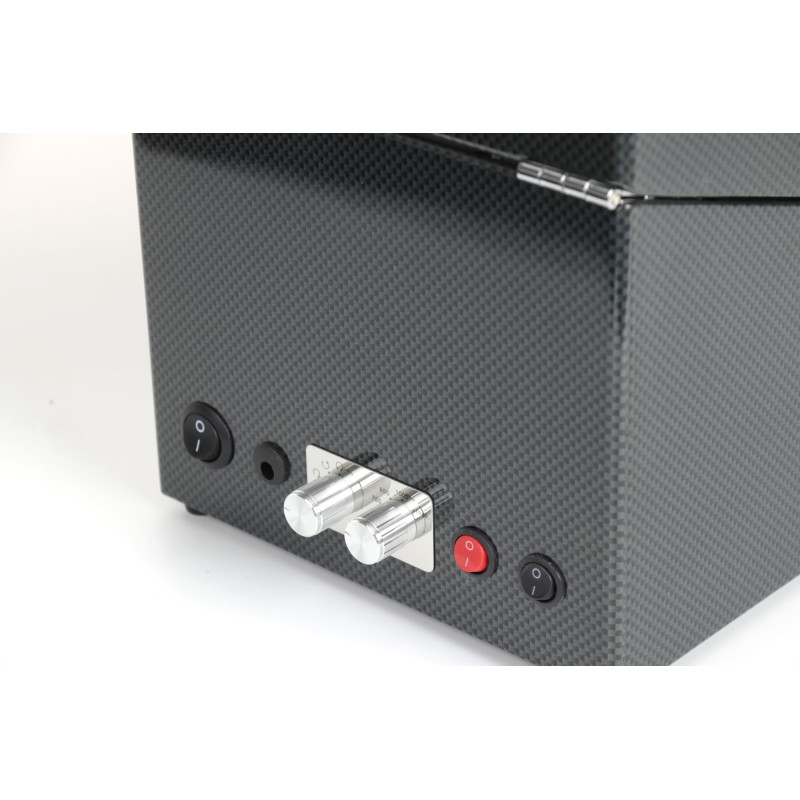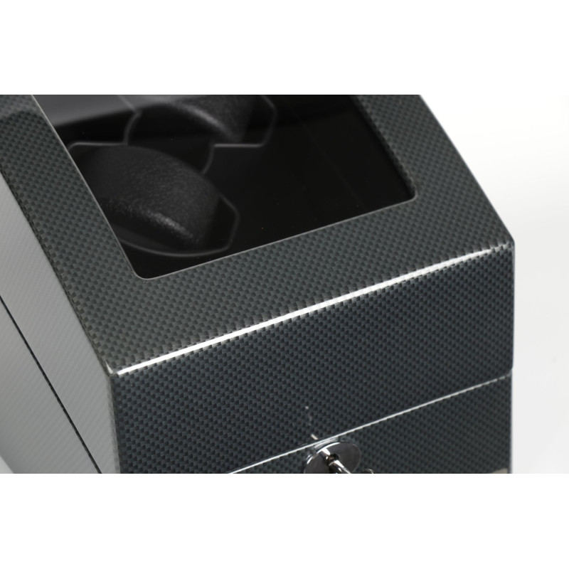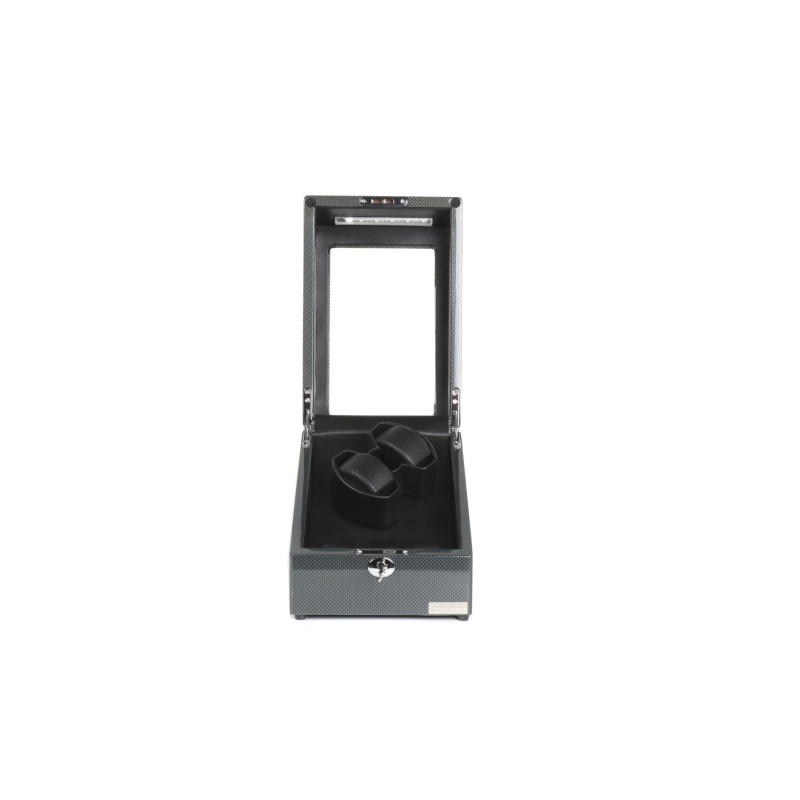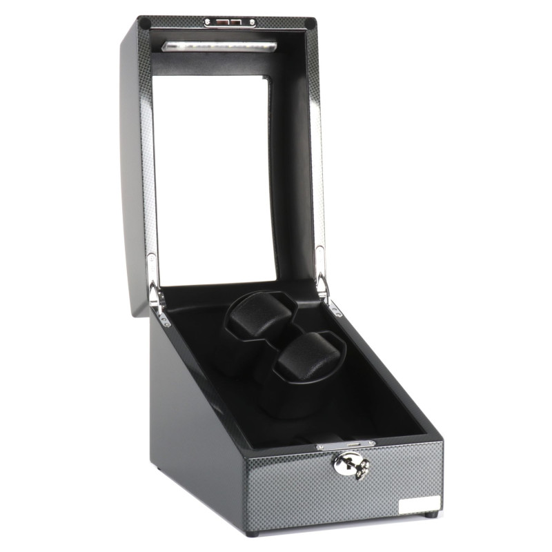 Шкатулка оснащена двумя независимыми роторами для аккуратного подзавода ваших автоматических часов. Дополнительно есть 3 мягкие подушечки для безопасного хранения других часов. Выберите оптимальный режим работы для каждого механизма из 9 программ подзавода. Функция автоматически отключает ротор после завершения цикла подзавода. LED подсветка внутреннего пространства для удобства использования в темное время суток. Замок надежно защитит ваши часы от пыли и посторонних взглядов. Работает от батарейки типа D.