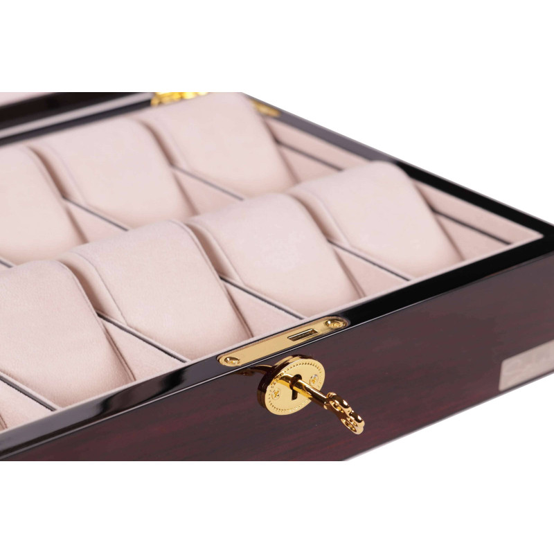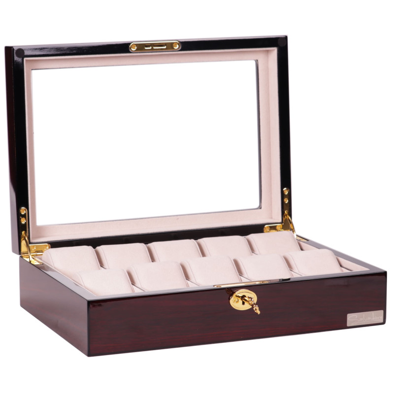 Количество мест для хранения часов - 10. В шкатулке вы найдете отделения для каждого часового изделия, сделанные из качественных материалов для защиты вашей коллекции.