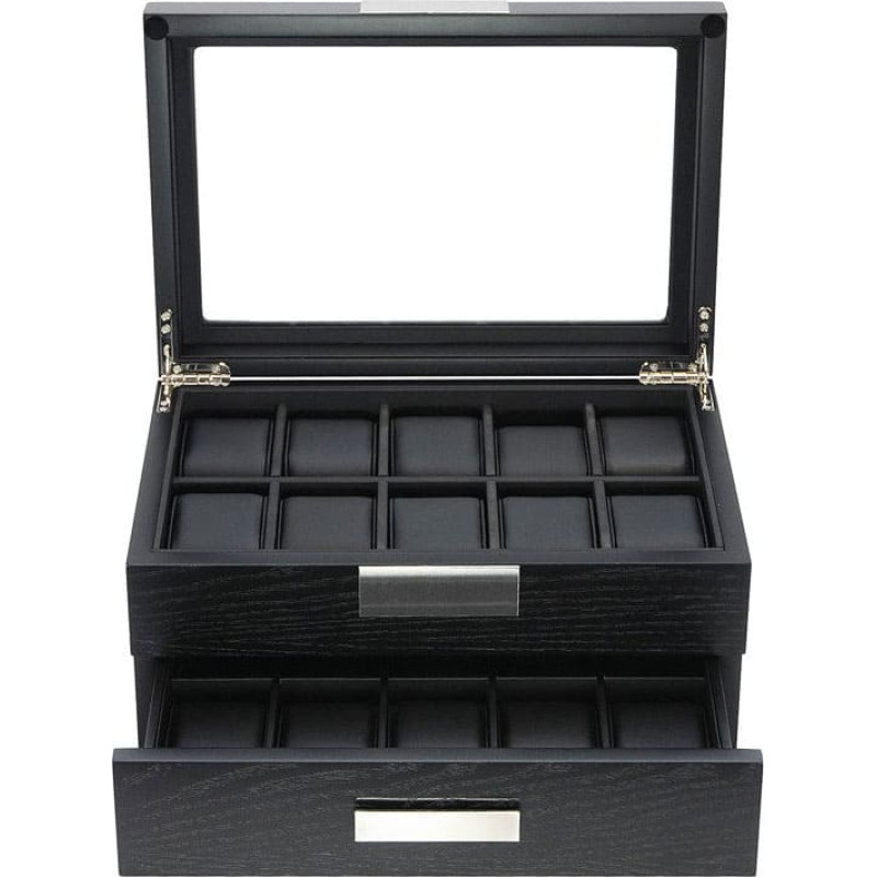 Количество мест для хранения в шкатулке составляет 20. Стоит отметить, что здесь не предусмотрен автоподзавод, но это не мешает данной шкатулке выполнять свои функции и хранить ваши часы в надежной форме.