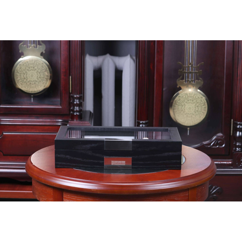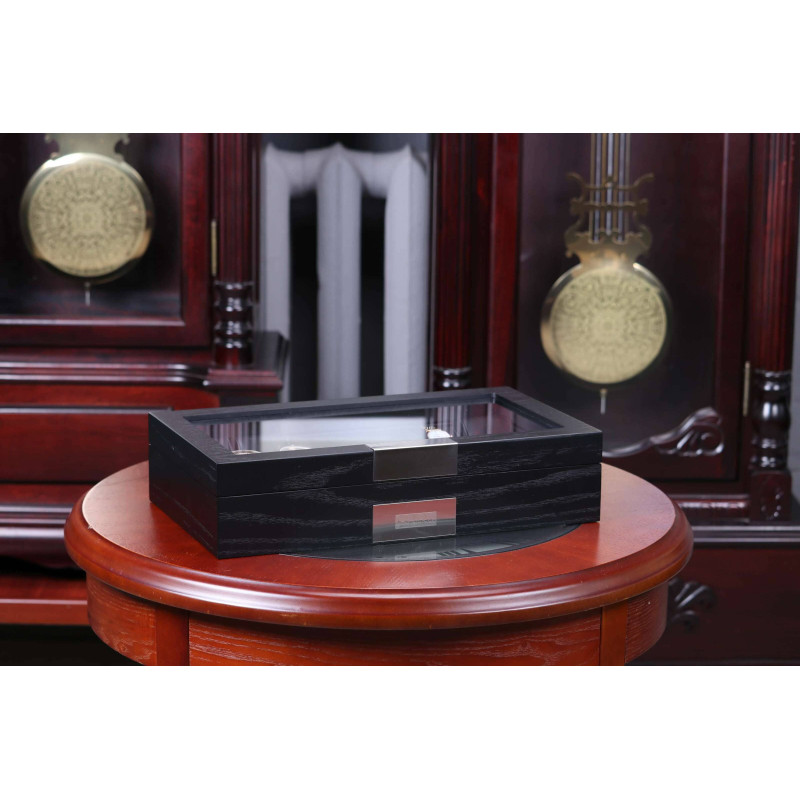 Материал корпуса – дерево, что придает шкатулке прочность и благородный вид. Интерьер выполнен из черной PU кожи, что сочетается с цветом корпуса. В шкатулке присутствует дополнительное место для украшений.