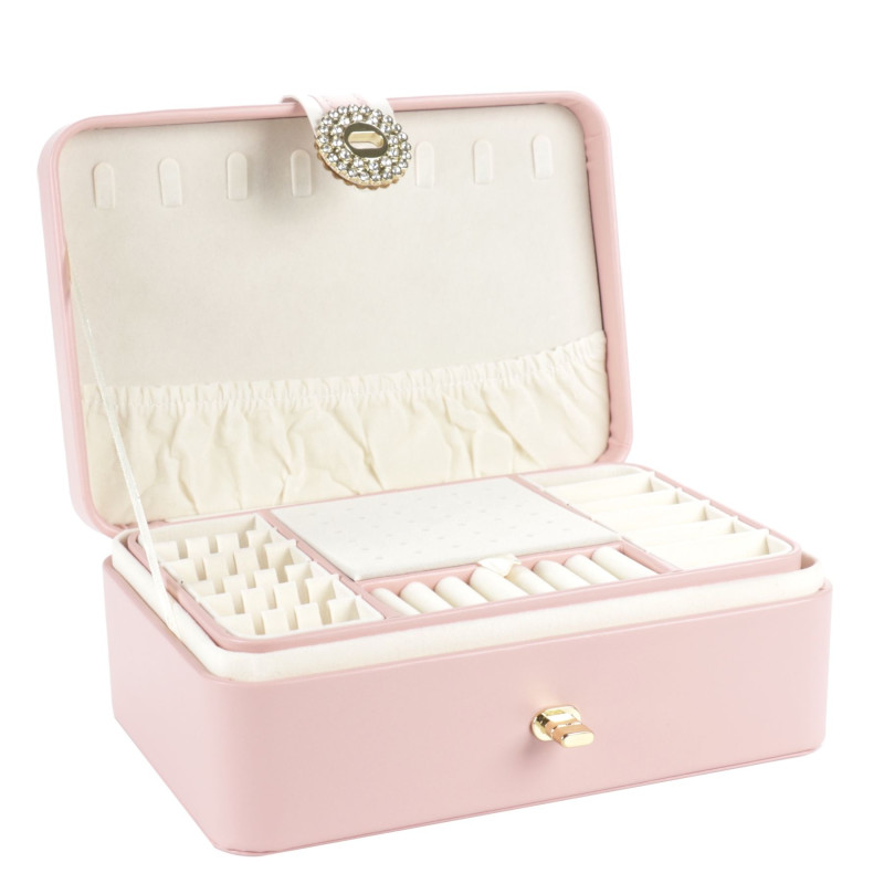 Бархатная внутренняя отделка бережно оберегает ваши украшения от царапин и потертостей. Отдельные отделения помогут вам легко найти нужные украшения. Несмотря на свои компактные размеры, шкатулка вмещает все необходимые украшения и станет украшением вашего туалетного столика. PU кожа придает шкатулке изысканный вид и долговечность. Нежный розовый цвет создает атмосферу романтики и уюта. Подойдет для любого интерьера и станет прекрасным подарком для себя или близких.