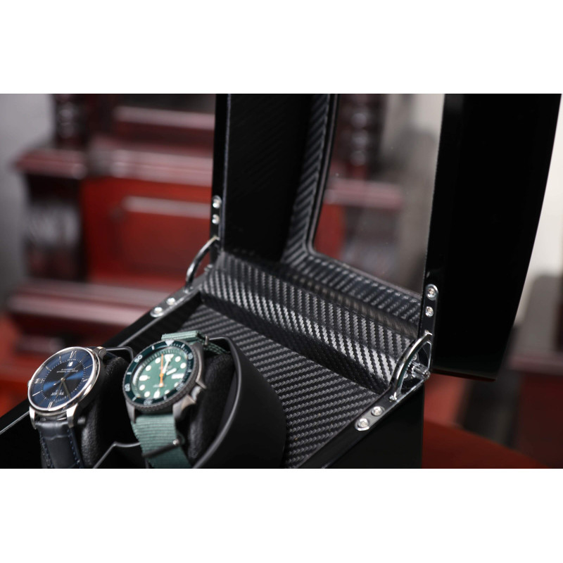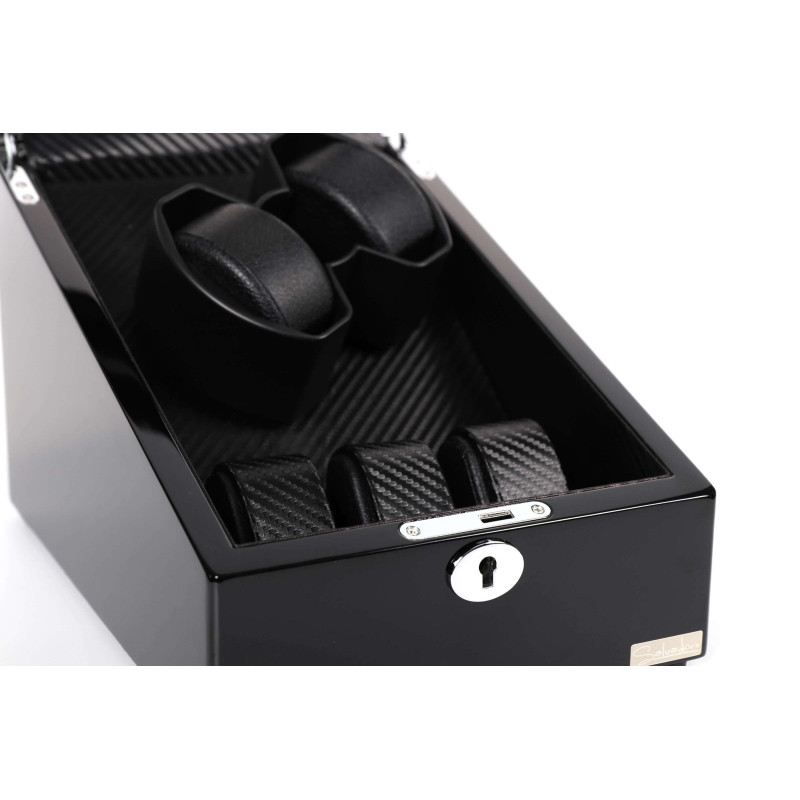 Одной из главных особенностей этой шкатулки является наличие автоподзавода, благодаря которому ваши часы всегда будут готовы к использованию. В кейсе предусмотрено три отделения для хранения часов. Интерьер выполнен из бархата светлого цвета, что придает дополнительные штрихи изысканности и элегантности.