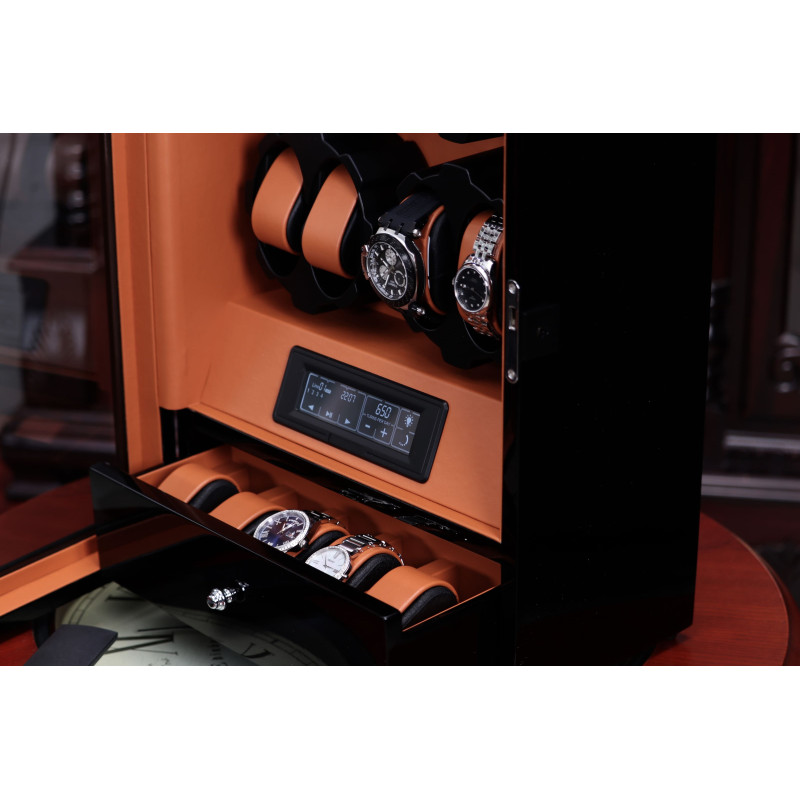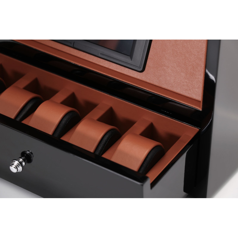 Возможность автоматического подзавода часов делает использование этой шкатулки особенно удобным и практичным. Кроме того, есть место для хранения украшений, а функция LED-подсветки обеспечивает отличную видимость при выборе нужных часов. Сенсорное управление позволяет управлять шкатулкой на расстоянии касания, а автостоп и замок обеспечивают безопасность и защиту часов.