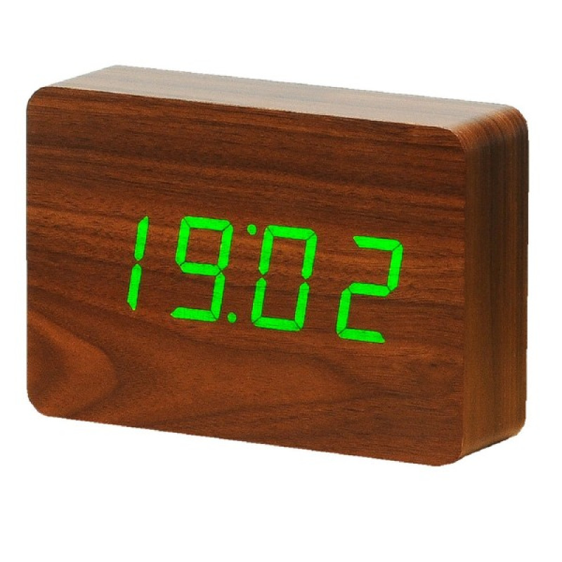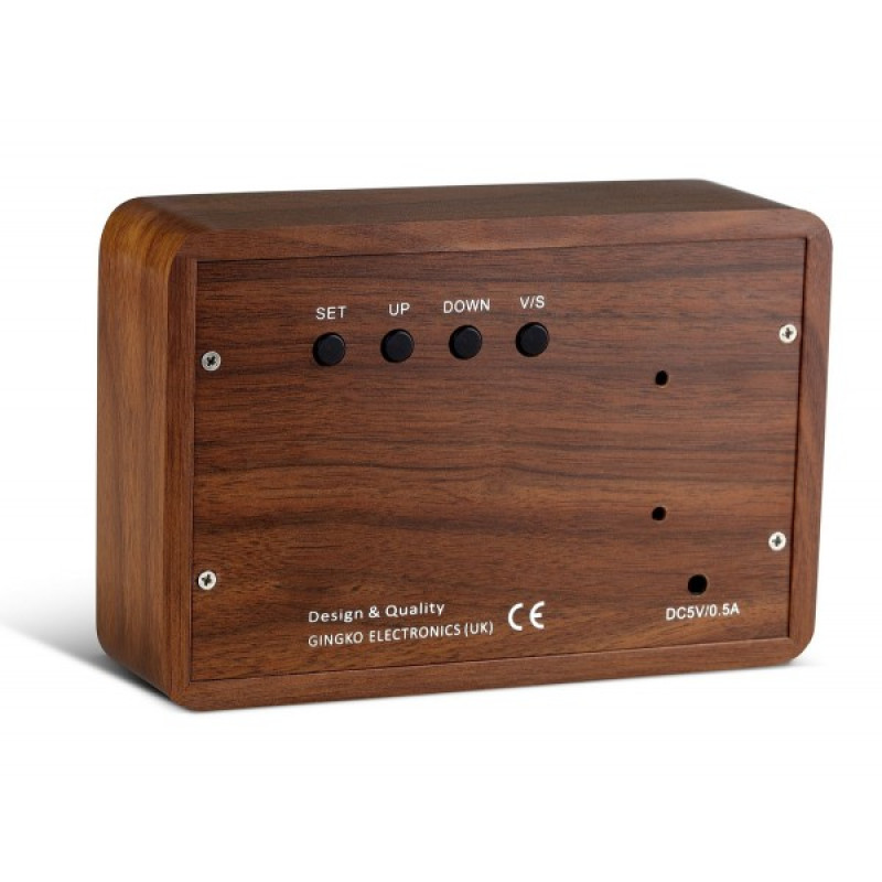 Смарт-будильник на аккумуляторе с термометром Gingko BRICK орех