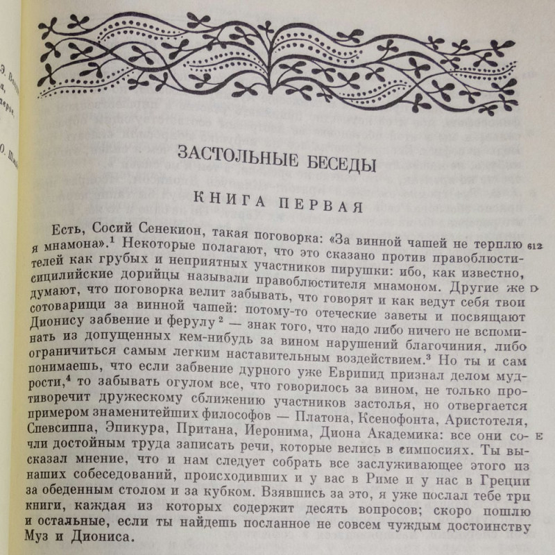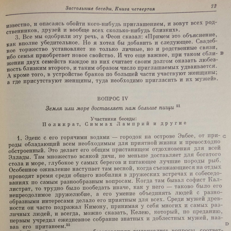 В собрание вошли "Застольные беседы", где в непринужденной форме высказываются рассуждения Плутарха, из которых можно узнать, "почему молодое вино не пьянит", "какая музыка лучше обеда" или "в чем причина булимии". Интересны и трактаты Плутарха "О суеверии", "Об любопытстве", "О том, что не надо делать долгов", и изречения царей и полководцев, спартанцев и спартанских женщин.