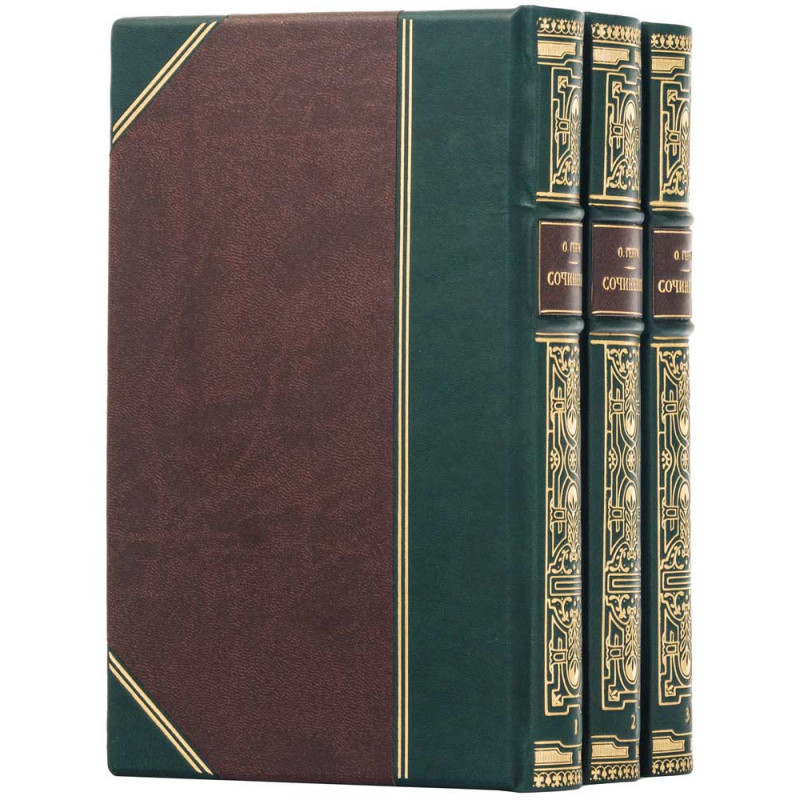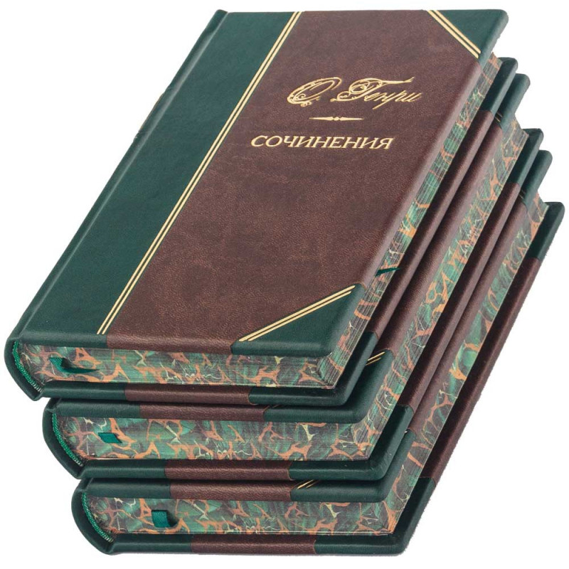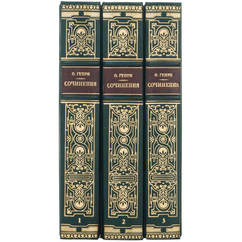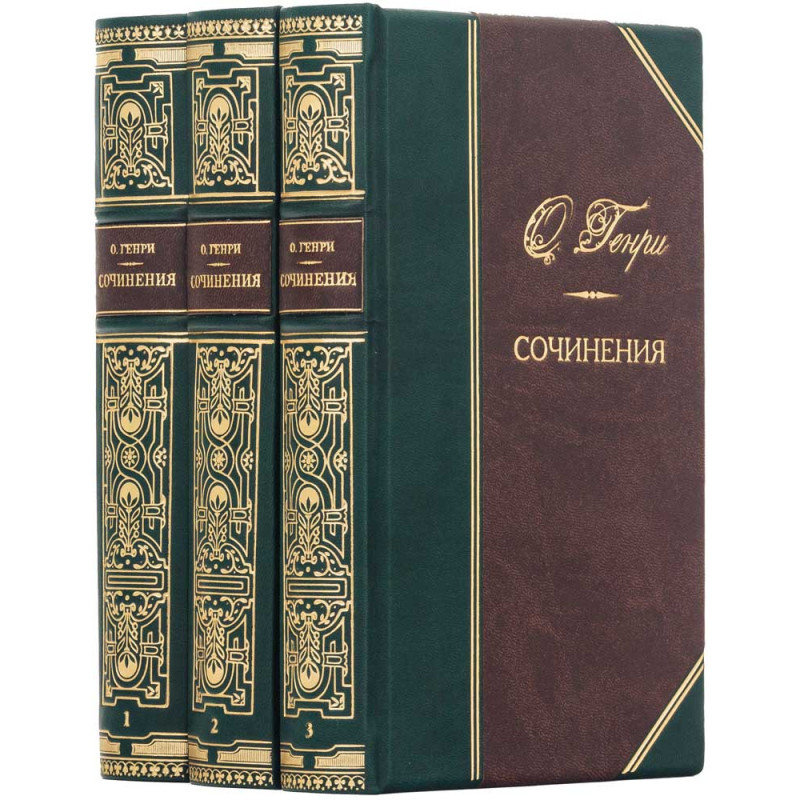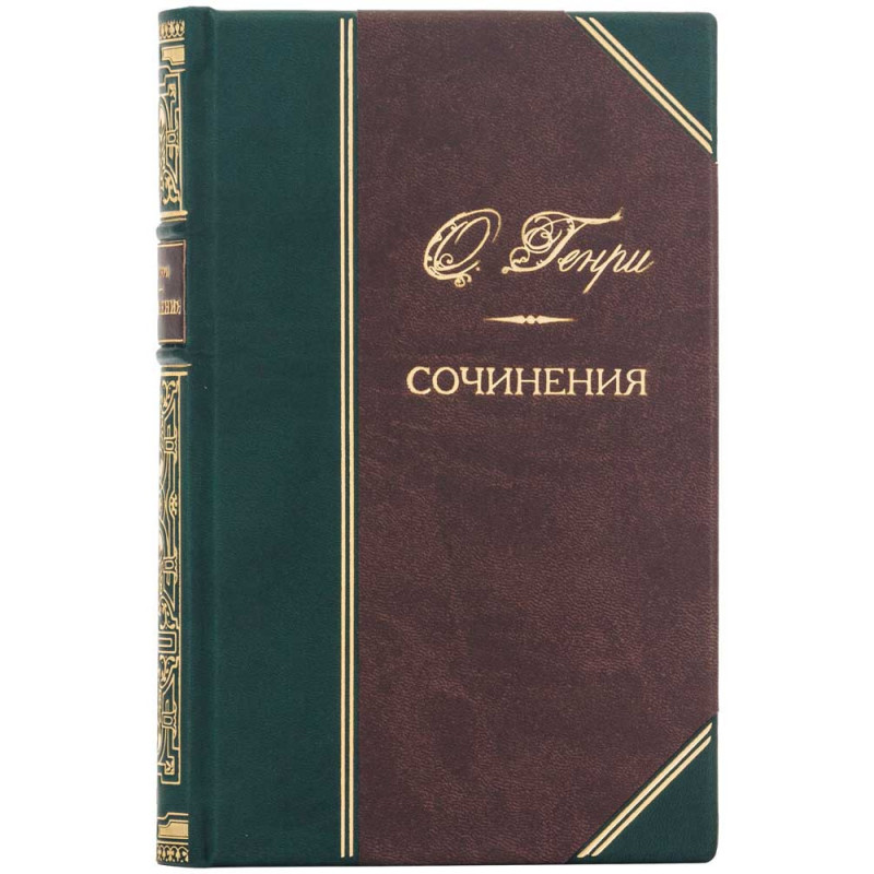 - Декор: золотое тиснение гармонично сочетается с насыщенным цветом переплета; на корне расположены тонкие золотые узоры, имя автора «О. Генри» и название Сочинения, подчеркивающее завершенность композиции.