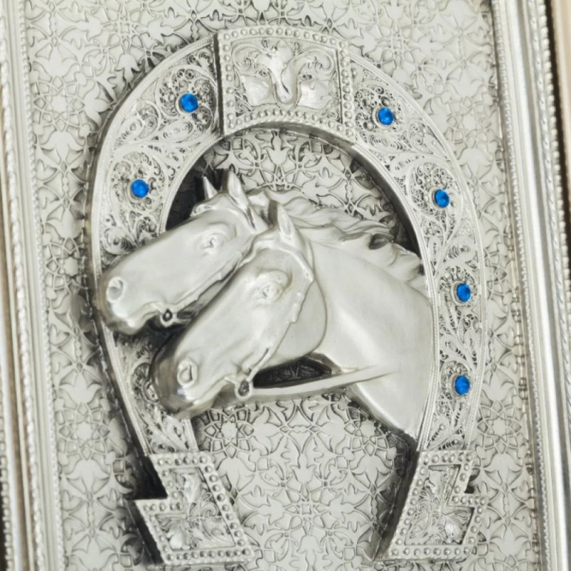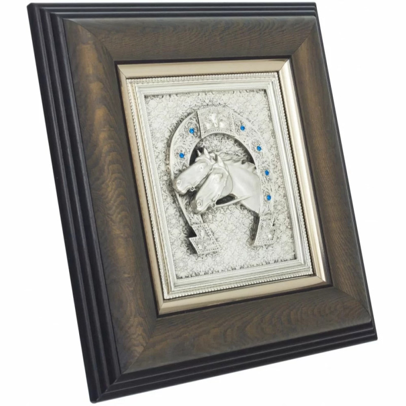 Панно "Подкова с лошадьми" посеребренное