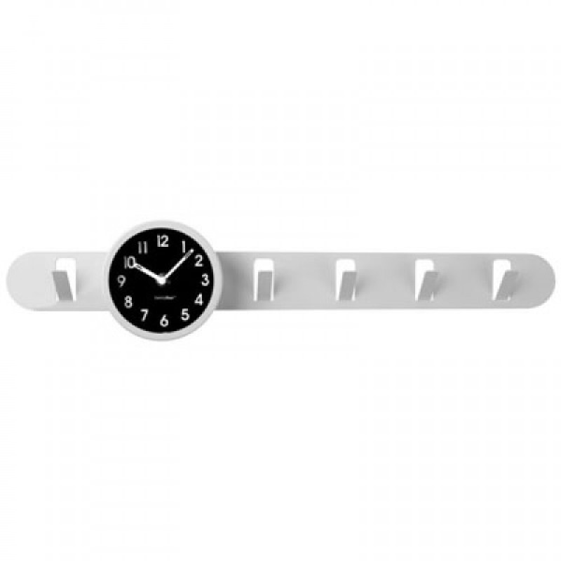 Думаешь над тем, чем порадовать близкого и дорогого человека к новоселью? В огромном ассортименте испанской компании Balvi есть креативные и стильные вещи. Они достойно украсят любое помещение и станут его визитками. Например, вешалка с часами Balvi Времечко - оптимальный выбор. Она белая, что придает солидности и стильности. Такое же впечатление создается благодаря лаконичности дизайна - небольшим крючкам для одежды, размещенным на горизонтальной основе с закругленными краями. Основным акцентом атрибута является временной механизм. Круглый, черного цвета циферблат гармонирует с самой вешалкой, так как в нем есть белые элементы: