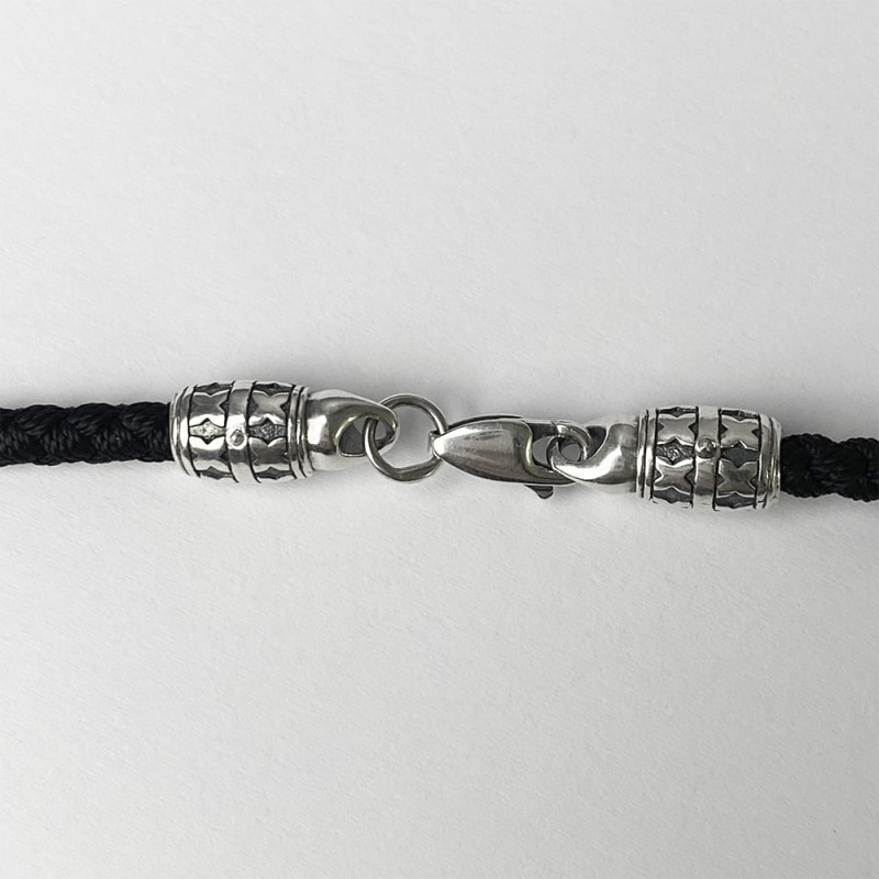 Также ювелирный шнур оснащен серебряной застежкой.