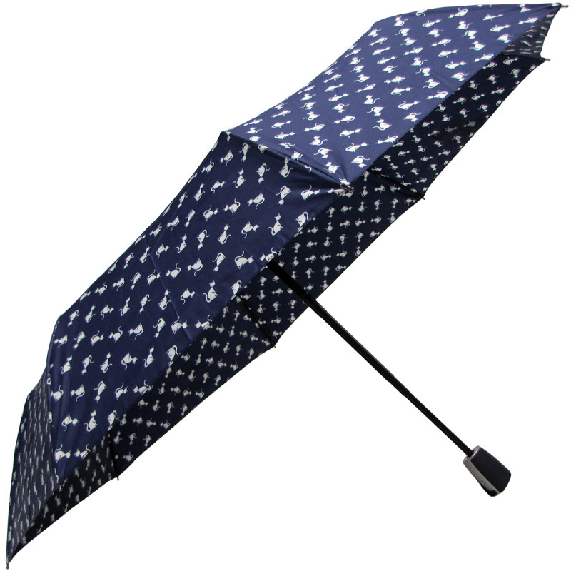 Этот зонт имеет автоматический механизм с тремя сложениями и восьмью спицами. Диаметр ее купола составляет 97см, а длина - 27см. Спицы зонта выполнены из трех материалов: стали, фибергласа и алюминия. Рукоятка изготовлена из пластика, а сам купол сделан из эпонжа, что обеспечивает прочность и надежность.