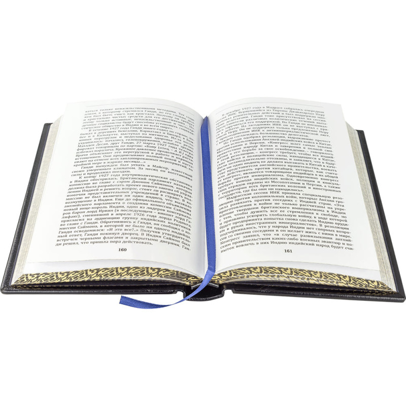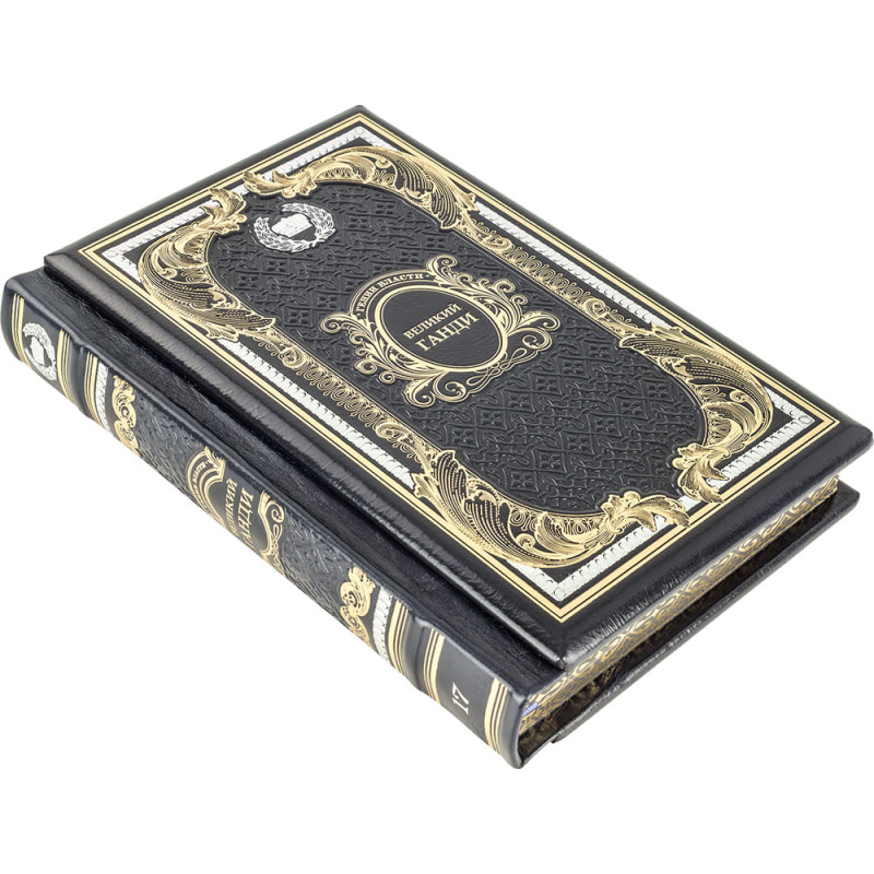 Складний переплет "Брадель", ручної роботи, виконаний з комбінації натуральної шкіри "Robbat blue" і "Robbat nero" виробництва італійської шкіряної фабрики Carisma". Обкладинка книг оформлена комбінацією багаторівневого об'ємного тиснення: рельєфного золотого, з використанням фольги "Luxor 240" і глибокого тиснення. Обрізи книг виконані в унікальній техніці позолоти з нанесенням орнаменту.